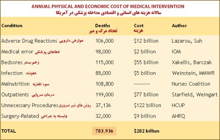 بیماری های ناشی از بیماری های درمانزاد در هر سال 784 هزار امریکایی را می کشد! و جهت
